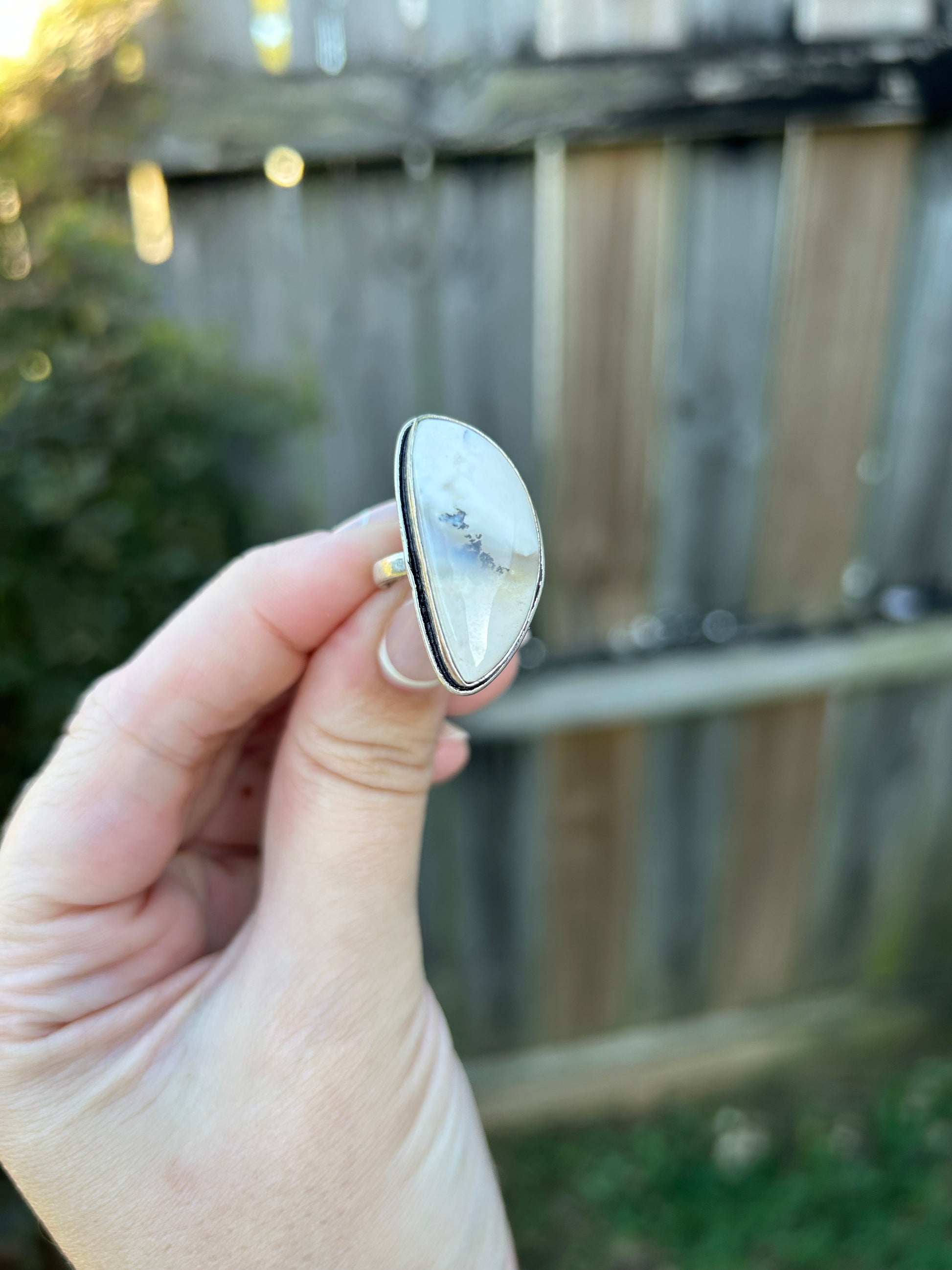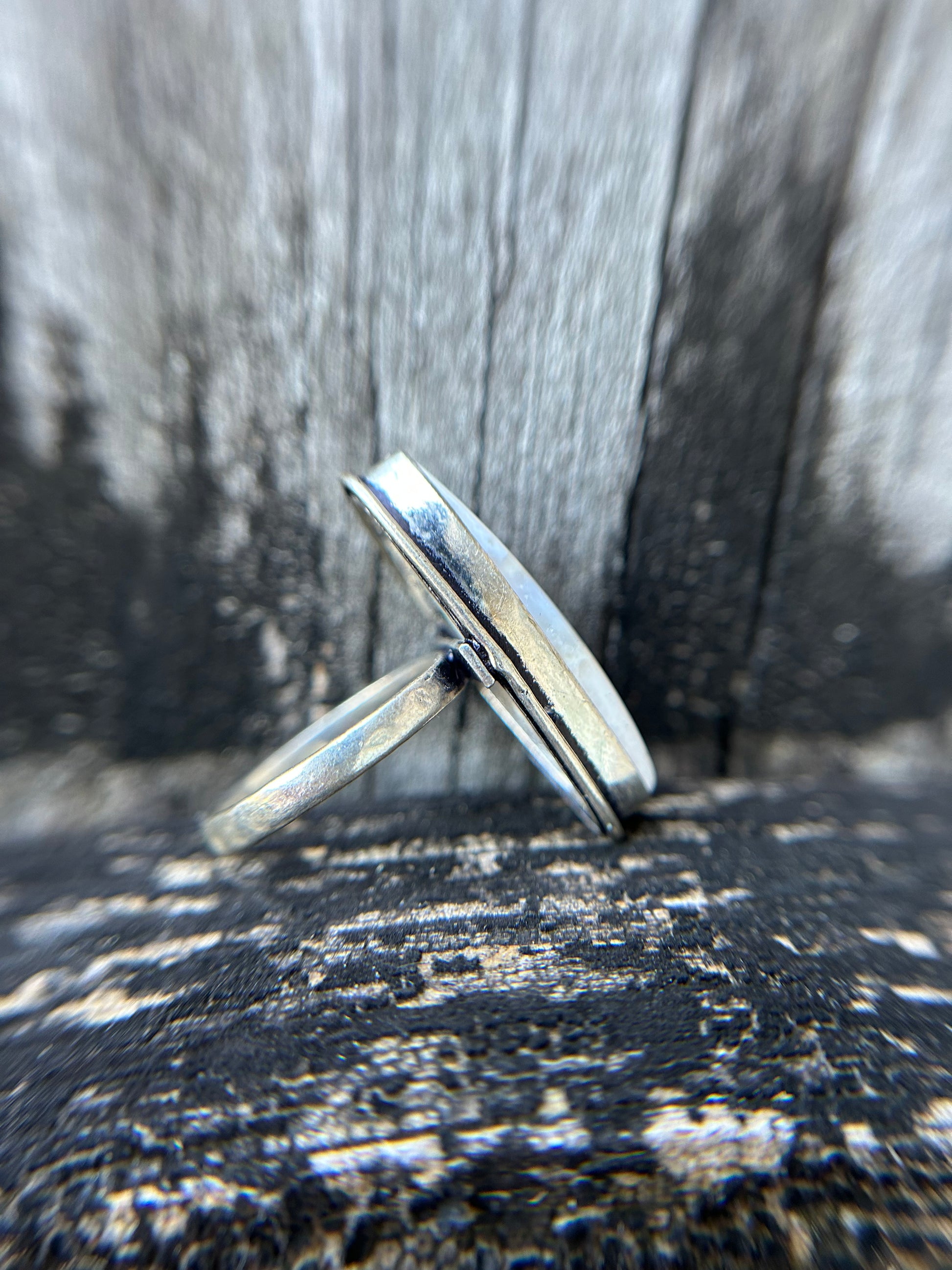 Make a bold impression with this large sterling silver ring featuring a uniquely shaped jasper stone, perfect for those who appreciate one-of-a-kind style.
