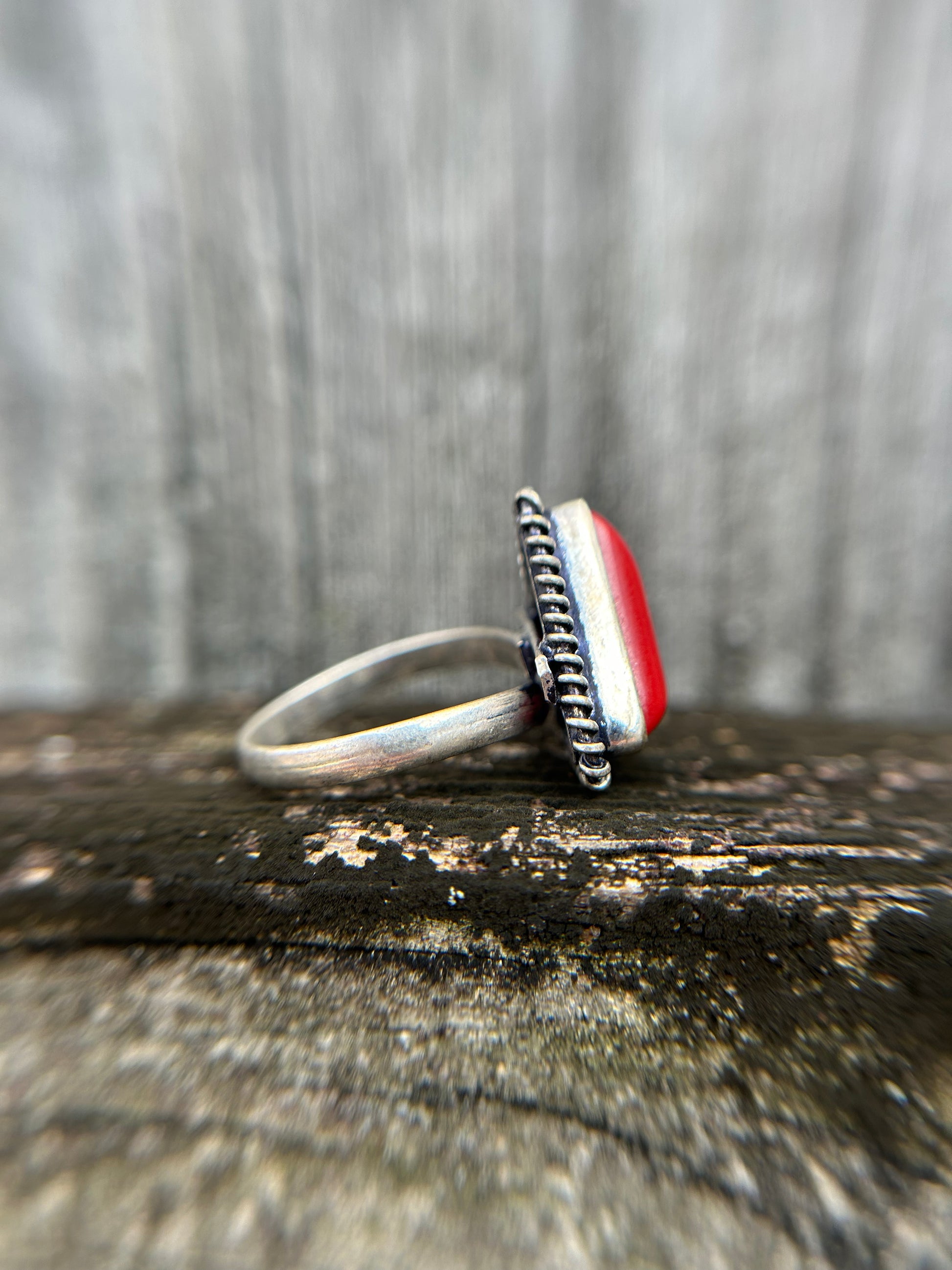 Embrace effortless bohemian style with this versatile sterling silver ring featuring a striking red triangular design. The adjustable fit ensures a perfect match for any hand, making it an accessible luxury that adapts to your lifestyle. Clean lines meet organic inspiration in this modern take on boho aesthetics—a piece that works as hard as you do, whether you're dressing up or keeping it casual.
